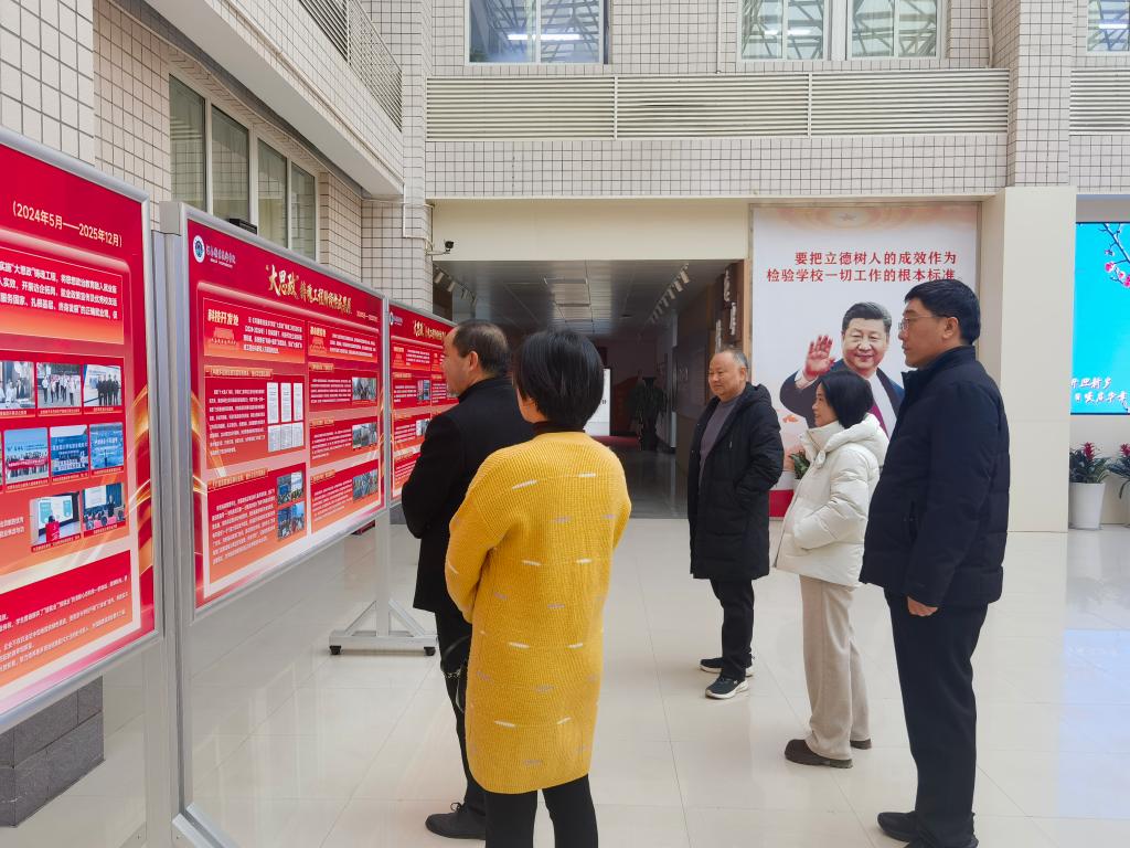 1月16日,国有资产管理处组织全体教职工在勤业楼一楼大厅组织参观学校“大思政”铸魂工程阶段性成果展。